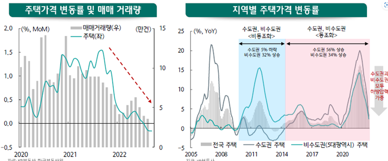 - 대출 부실화와 부의 자산효과를 통해 민간 소비 및 경기 위축으로 연결될 가능성