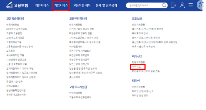 2. 기업 서비스 > 이직 신고 클릭